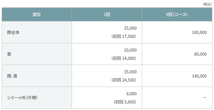 A: 肌のターンオーバーが約4週間ですので、その周期に合わせて、4週間ごとに5〜6回の施術を推奨しています。
